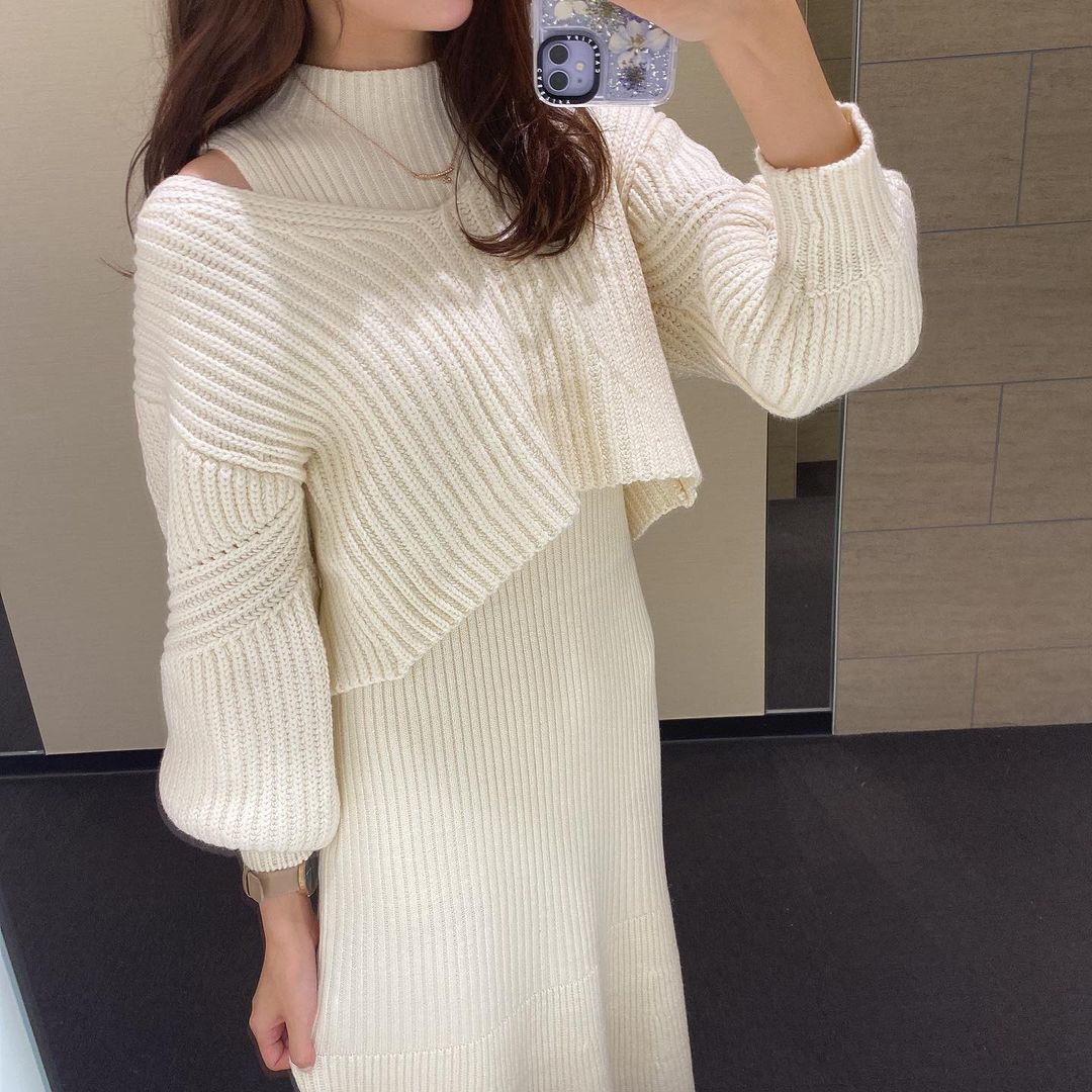 真っ白なニットワンピ
