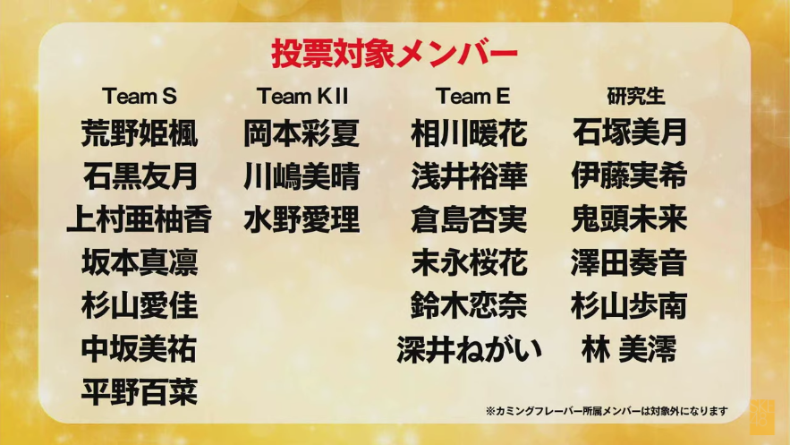 非選抜非カミングフレーバー年齢で今回投票対象外のメンバーも思い出してあげてください……