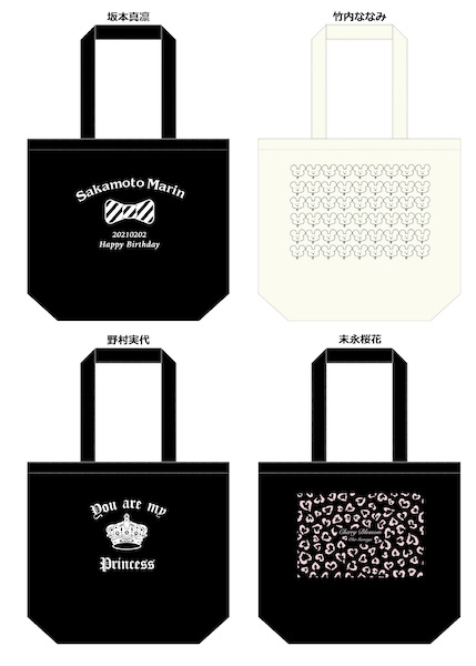 ●生誕記念トートバッグ(2021年2月度)(坂本真凛/竹内ななみ/野村実代/末永桜花)各2,500円(税込)