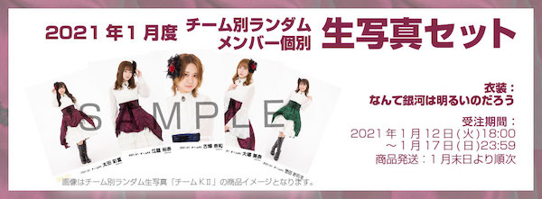 2021年1月度生写真セットの販売を下記スケジュールにて行います。