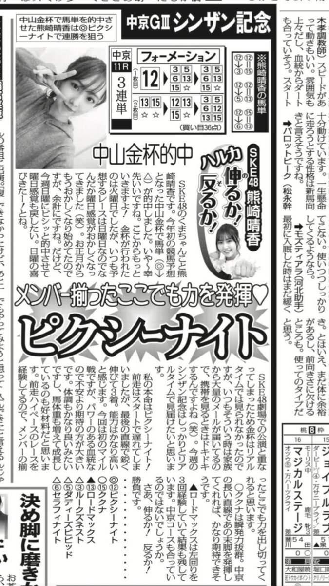 本紙で競馬予想コラム連載中のSKE48・熊崎晴香さん