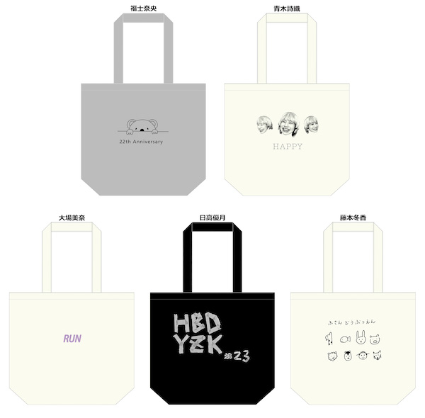 ●生誕記念トートバッグ(2021年4月度)(福士奈央/青木詩織/大場美奈/日高優月/藤本冬香)各2,500円(税込)