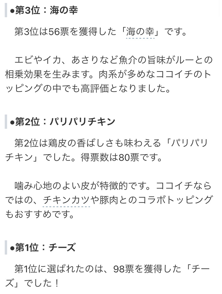 ココイチの人気トッピングランキング発表
