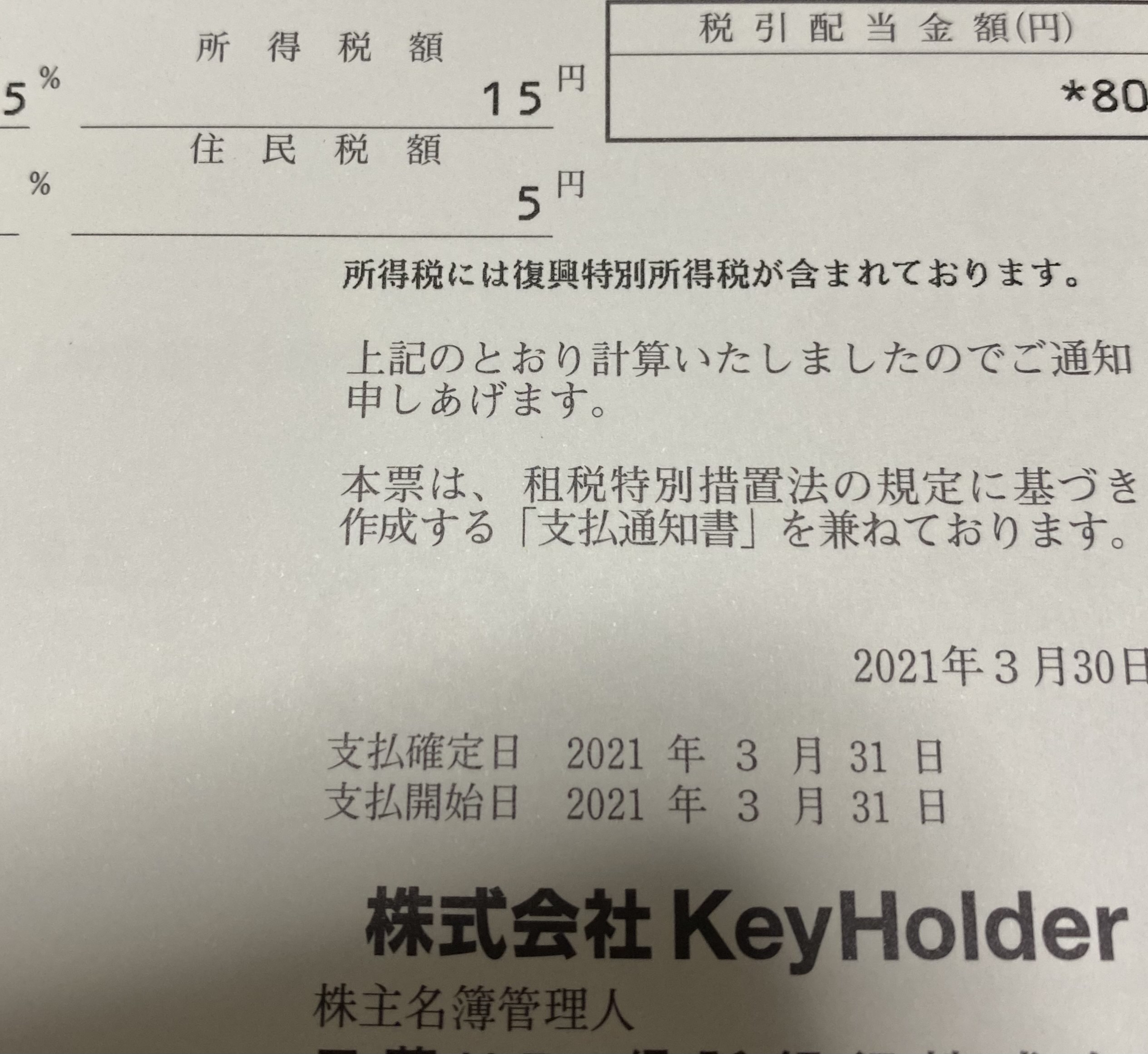 キーホルダーの配当金キタ━━━━━━(゚∀゚)━━━━━━ !!!!!