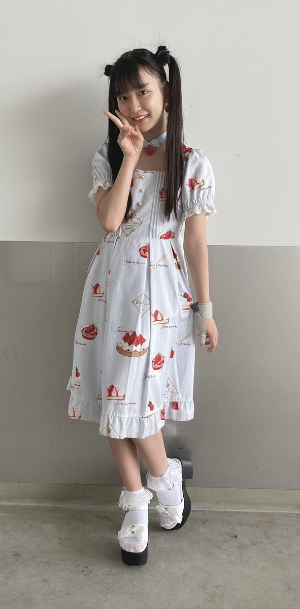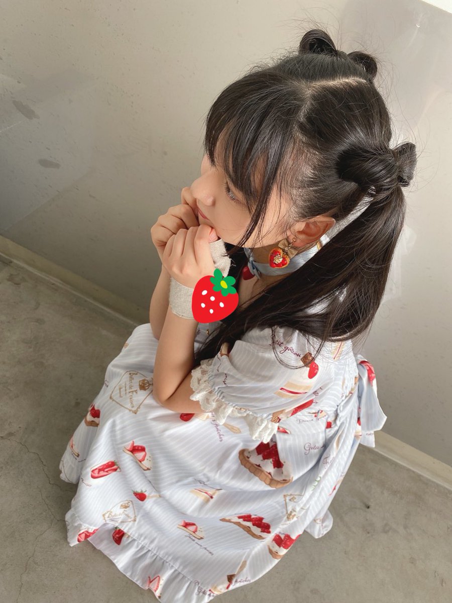 今日のコーデは、大好きな🍓のワンピースと、地毛で作ったリボンツインテール🎀