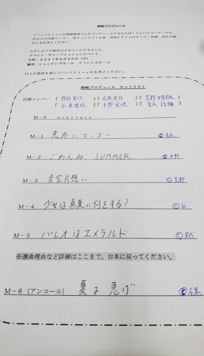 直筆のセットリストもアップさせていただきます🎵