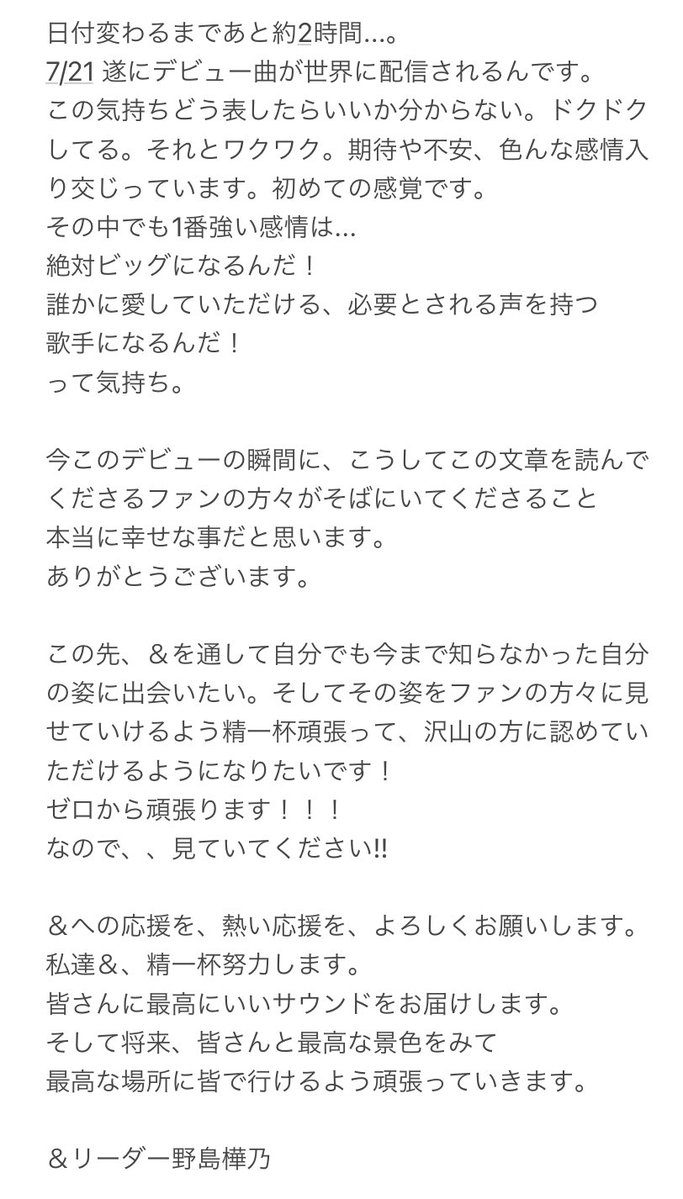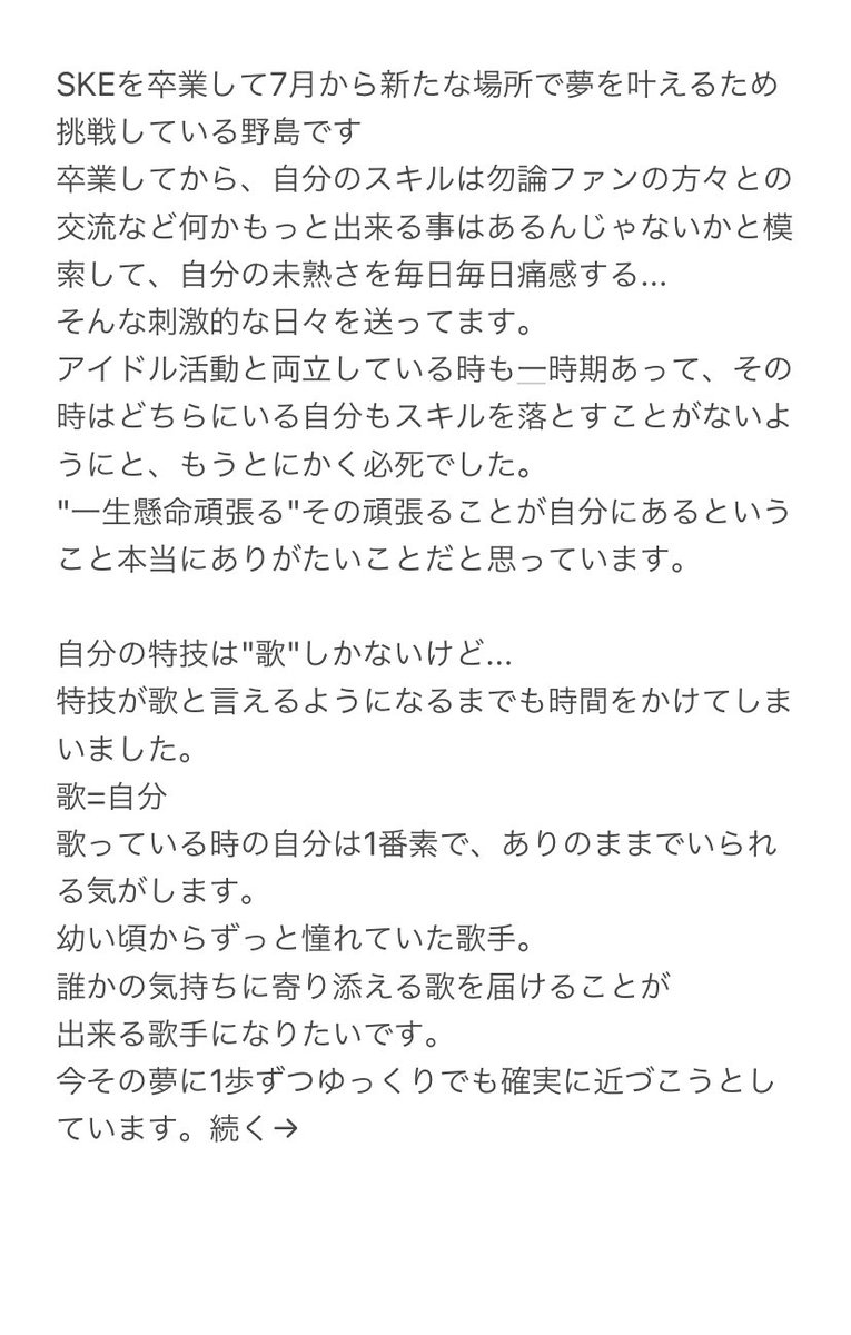 【&】 野島樺乃「文章上手くまとめられているか分かりませんがよかったら読んでくださいっ。」
