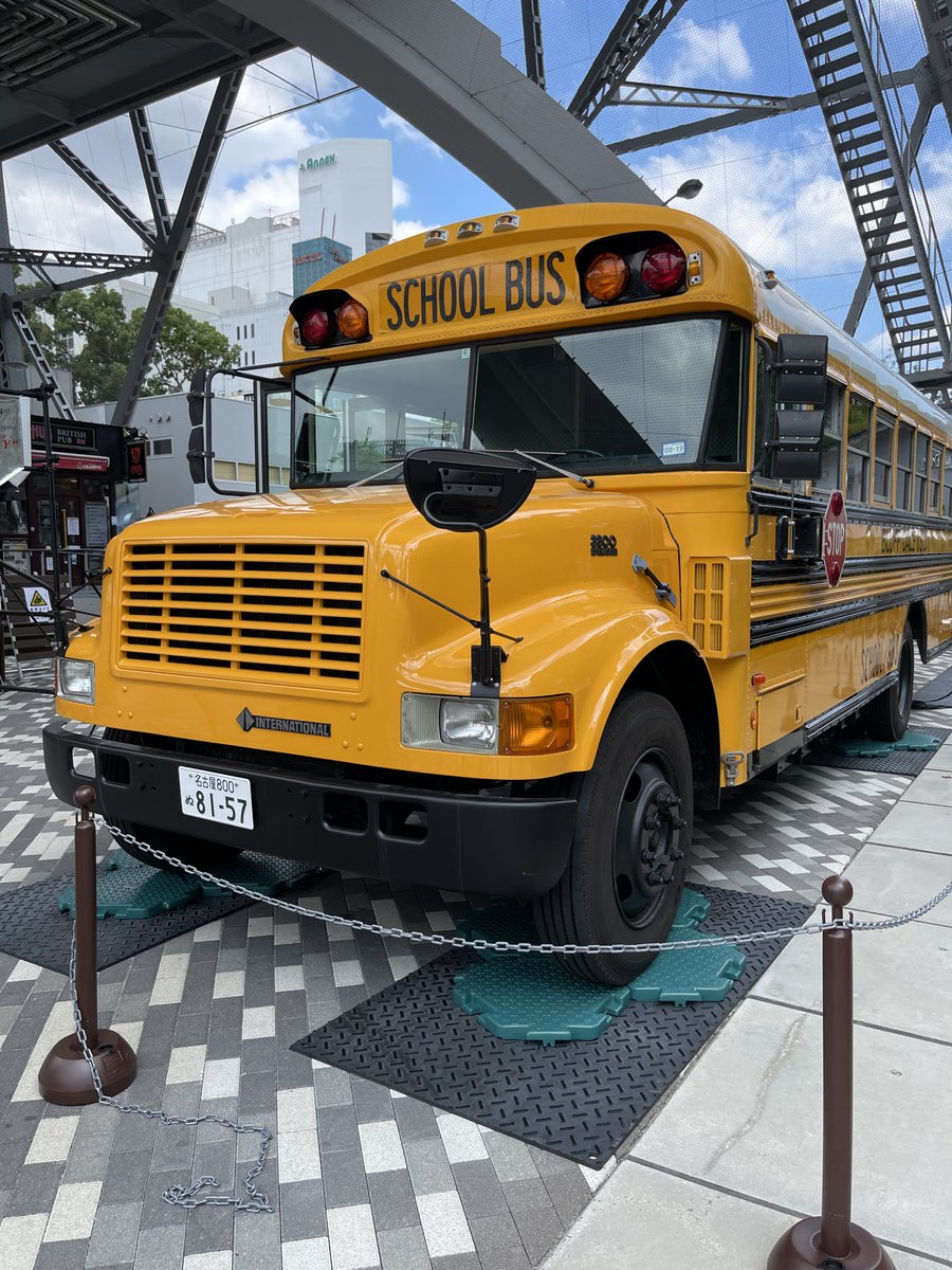 中部電力MIRAI TOWERの下にスクールバスが停まってる。 昔、こんなバスが・・・