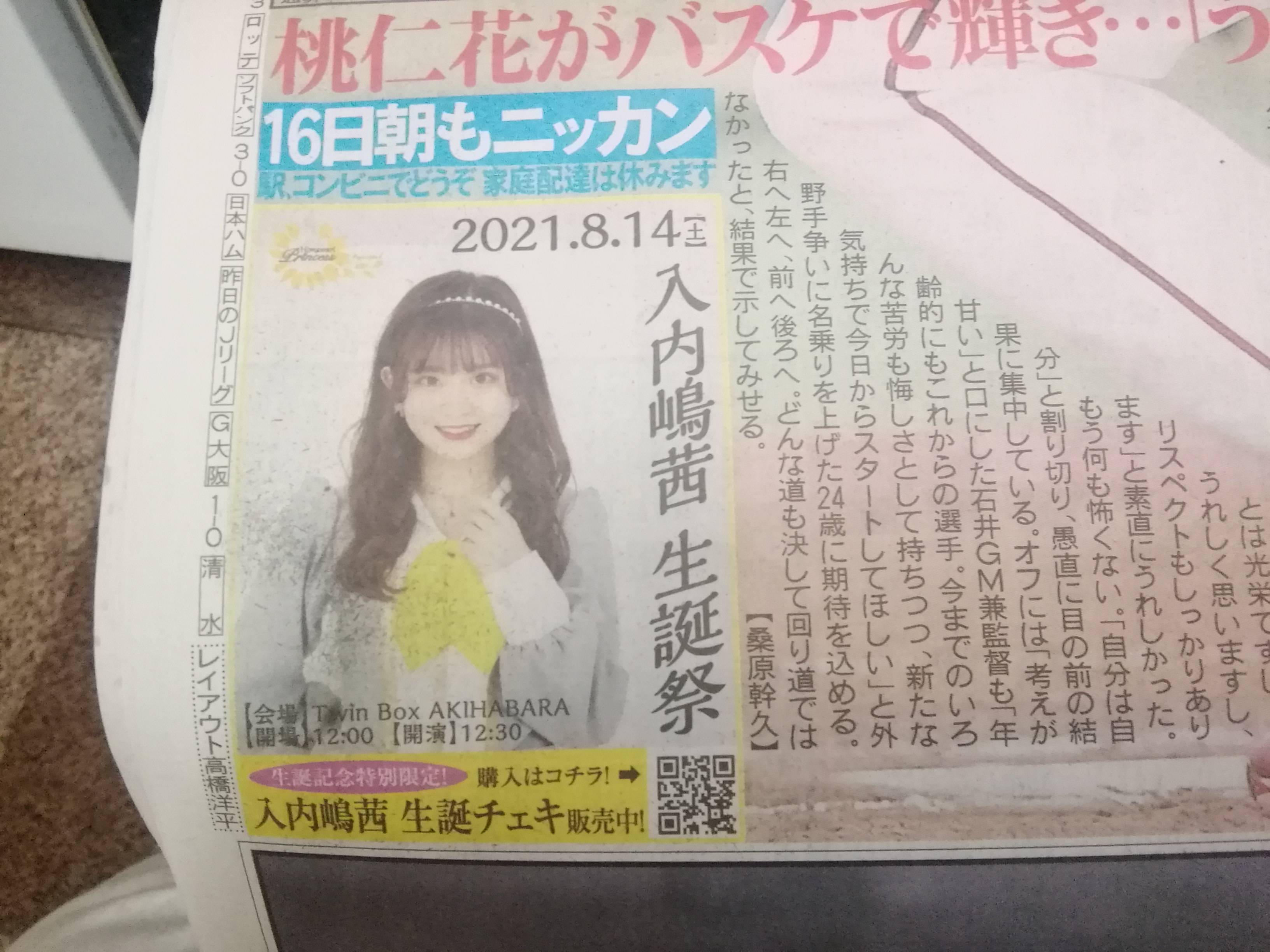 日刊スポーツ1面にSKE48メンバーのお姉さんの広告?が掲載されている!!!