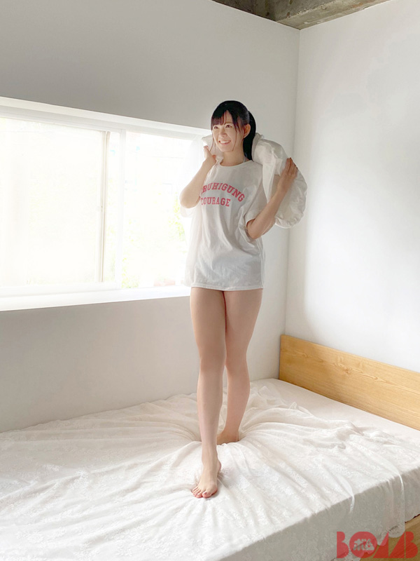 あーーやが着てるTシャツは普通のサイズ。だけど着がえた瞬間…え?水着が見えない!そこで撮影されたのが扉の写真。