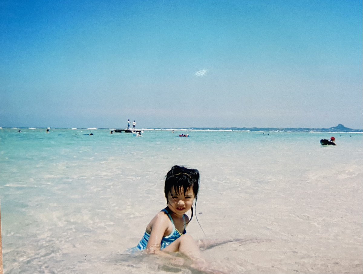 綺麗な海を背にしてるグラビアみたいな5歳の時の写真を見つけました!