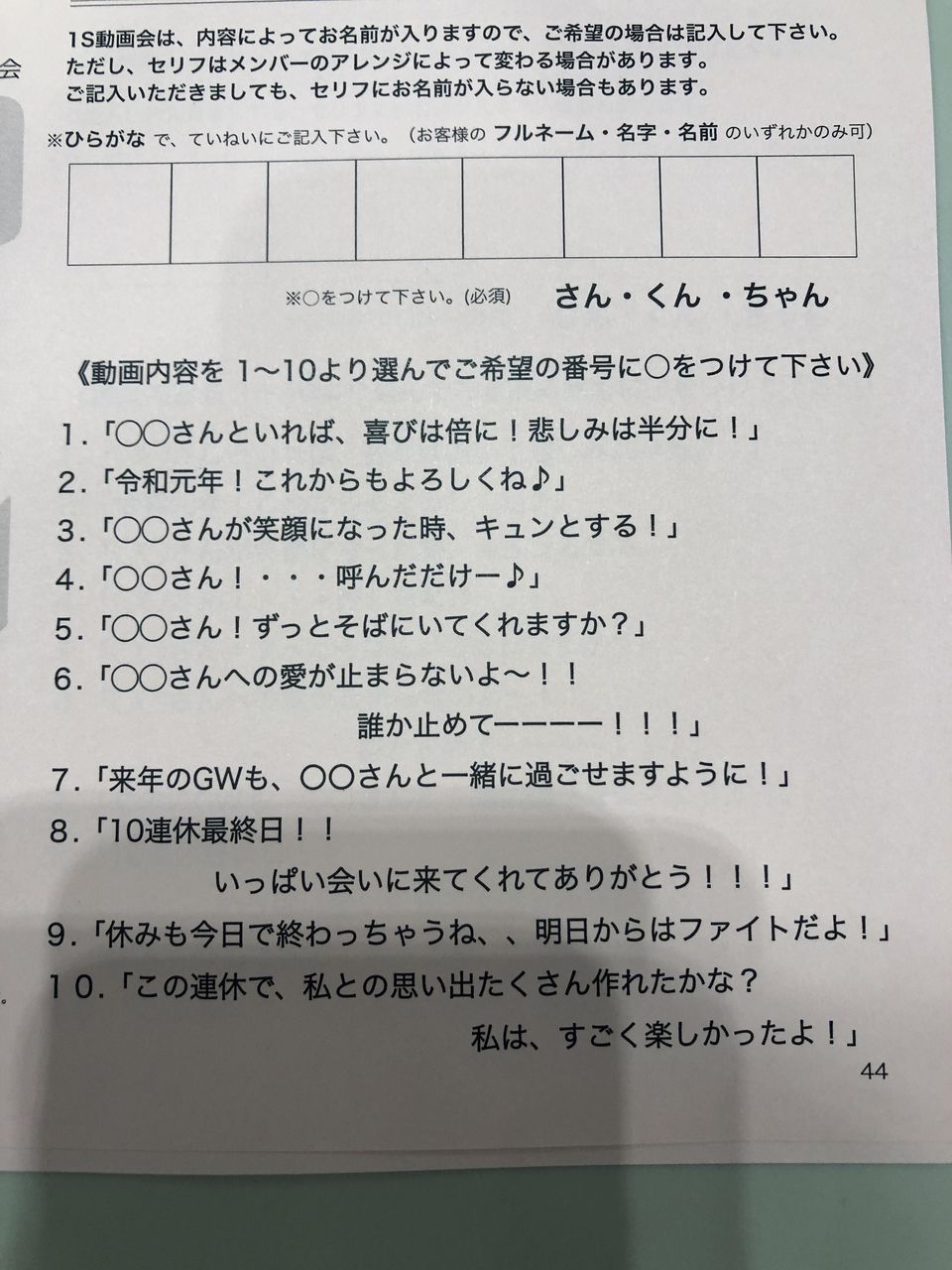今日の1S動画のセリフ・・・
