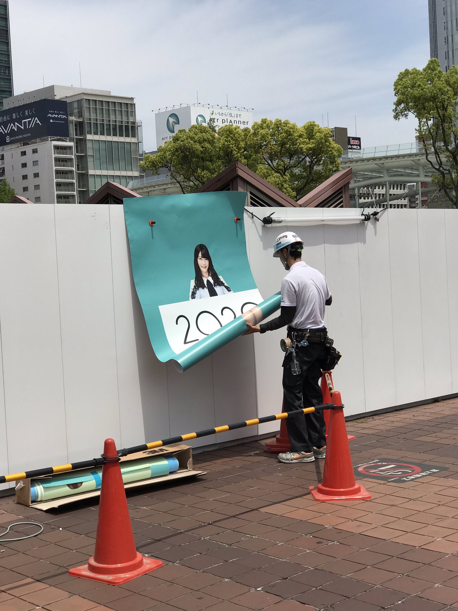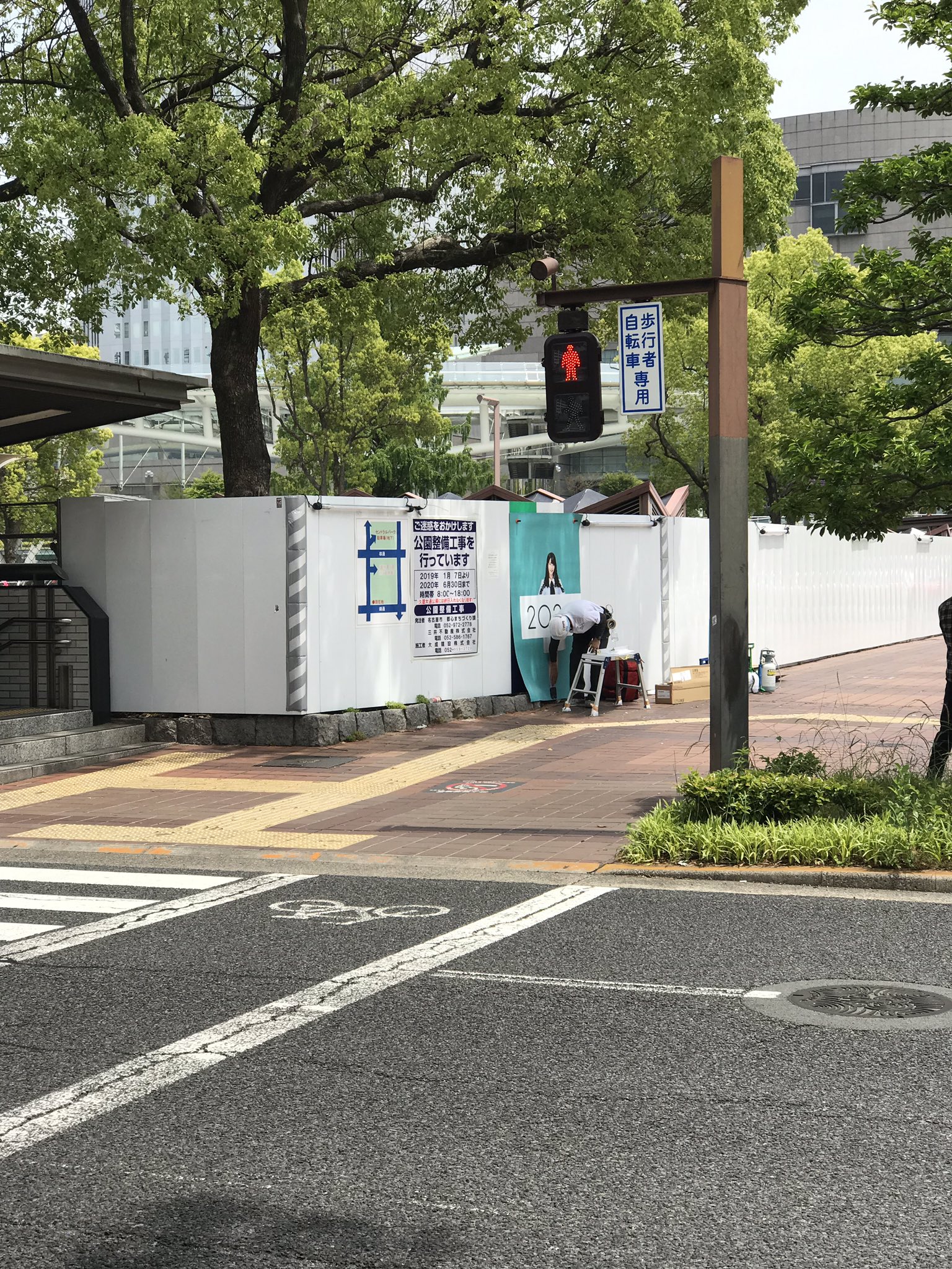 久屋大通公園再整備工事の仮囲いに #SKE48 メンバーのデザインシート貼り付け作業中!(15:15現在の状況)#栄プロモ #栄スペシャルサポーター pic.twitter.com/wq2Dz1yN3Y