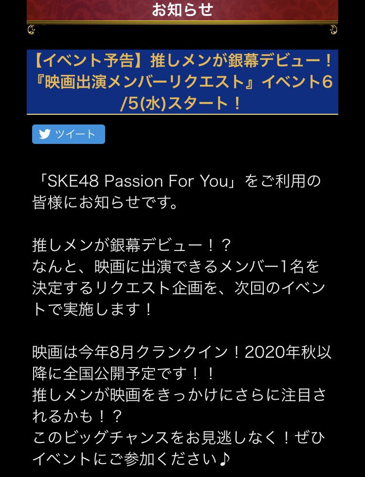 「SKE48 Passion For You」をご利用の皆様にお知らせです。