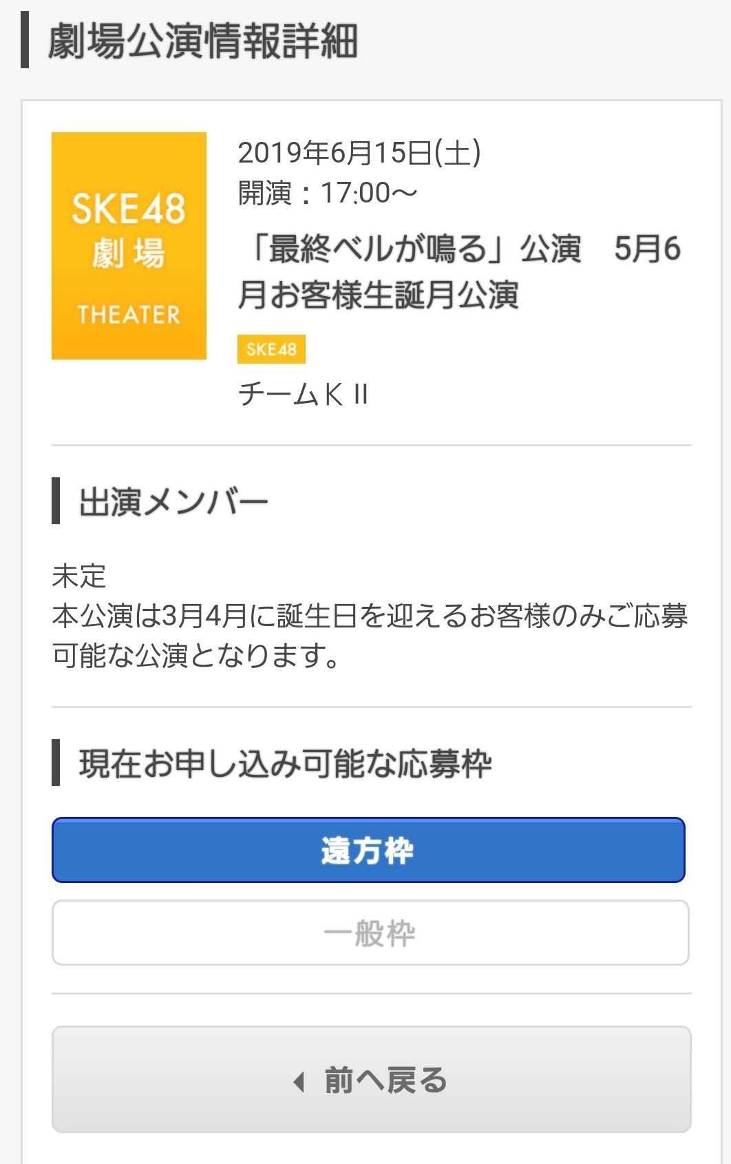 【SKE48】5月6月お客様生誕月公演なのに3月4月誕生日の人しか応募できない