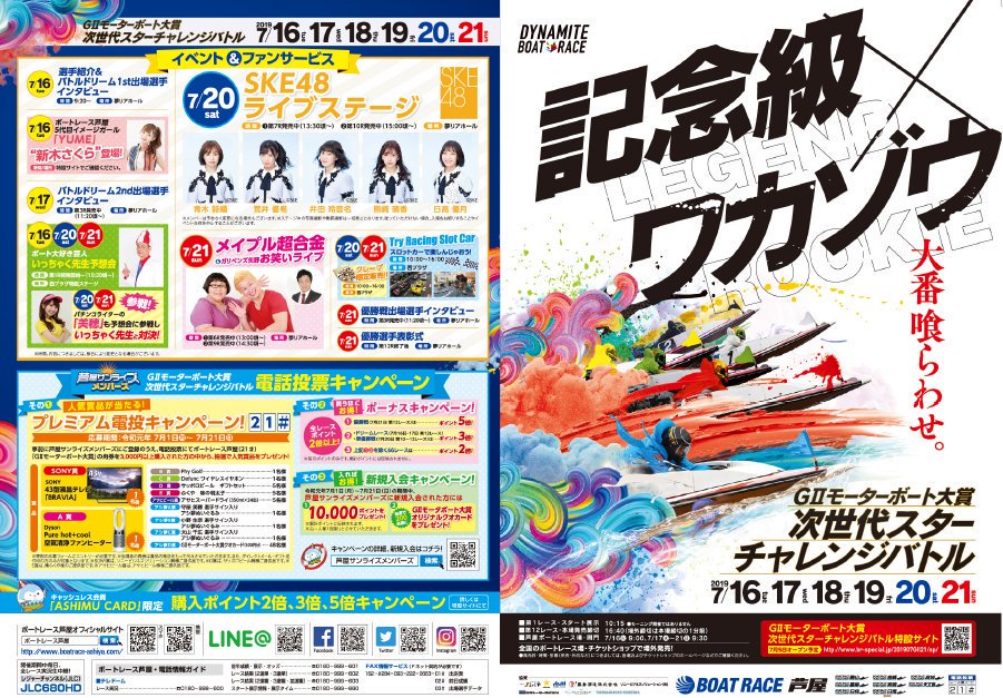 7月16日から21日まで芦屋で開催の「GⅡモーターボート大賞 次世代スターチャレンジバトル」のパンフレットが完成しました‼️