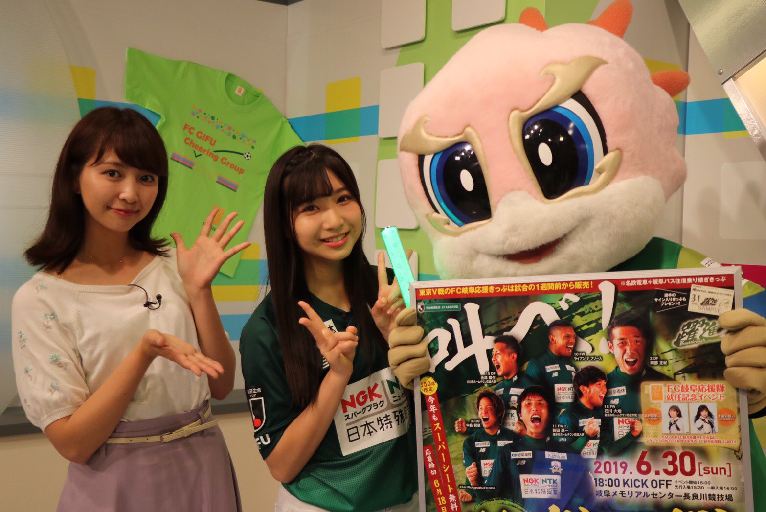 FC岐阜応援隊、副隊長としてギッフィーとともに6月30日イベント告知をしてきましたよ!放送は明日6月26日、18:15~のStationです!!