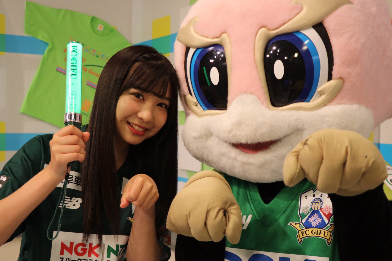 FC岐阜応援隊に就任した、#SKE48 の、あやめろ(@Ayamelody0817)と一緒に6/30東京ヴェルディ戦の告知で岐阜チャンにおじゃしたよー😊💚