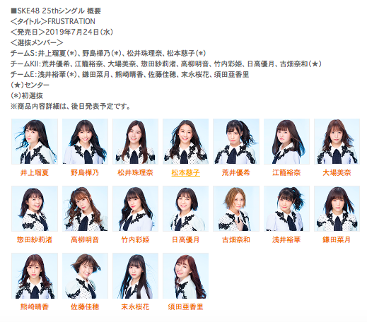7月24日(水)に25枚目のシングルをリリースするSKE48。その新曲のタイトルが「FRUSTRATION(フラストレーション)」に決定した。