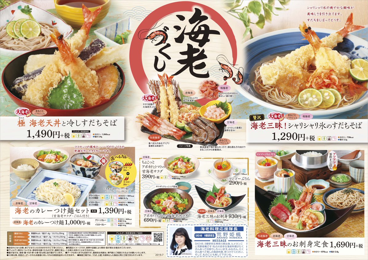 【サガミ×SKE48】海老づくし料理のメニューに荒野姫楓の応援メッセージが掲載!