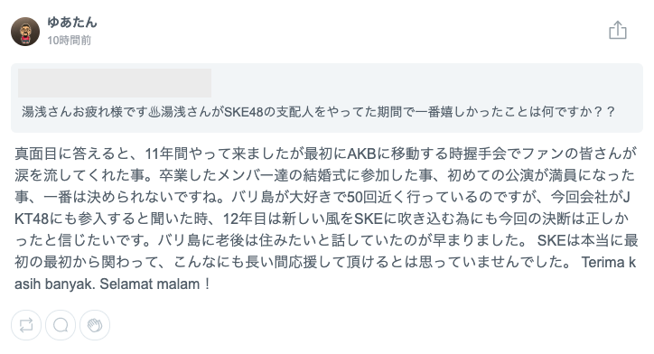 湯浅さんがSKE48の支配人をやってた期間で一番嬉しかったこと