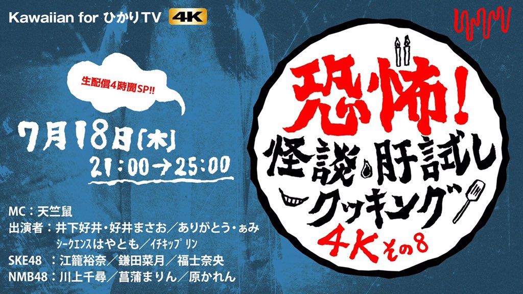 SKE48江籠裕奈、鎌田菜月、福士奈央が7月18日「恐怖!怪談肝試しクッキング4K」その8に出演!