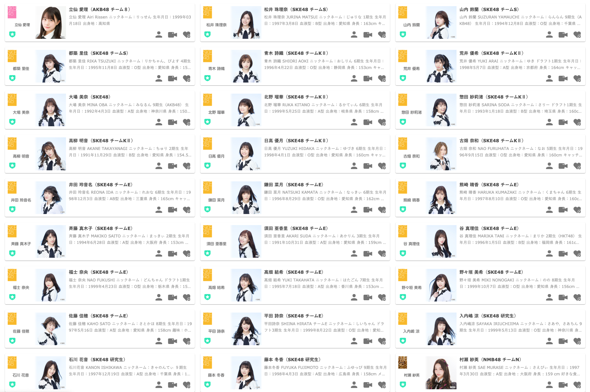 【SKE48メンバープロフィール】 (ランダム表示)