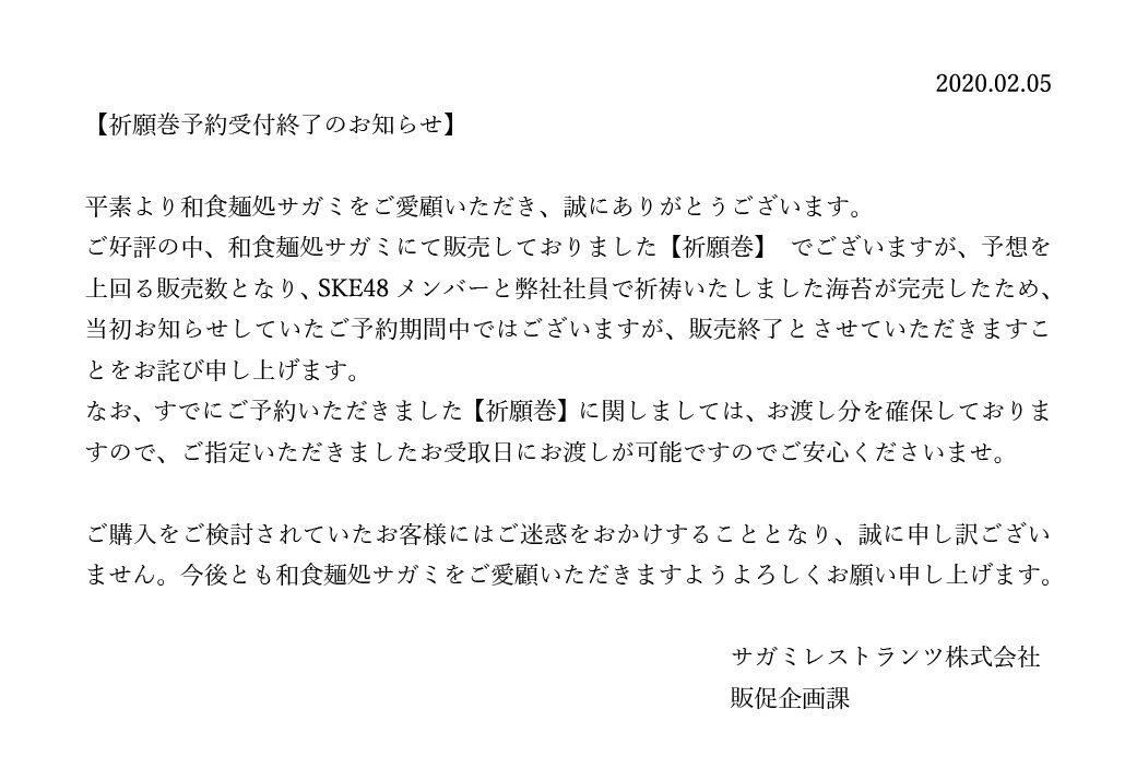 #話食推しメン処サガミ からの お知らせ・・・