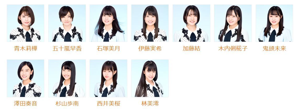 青木莉樺、五十嵐早香、石塚美月、伊藤実希、加藤結、木内俐椛子