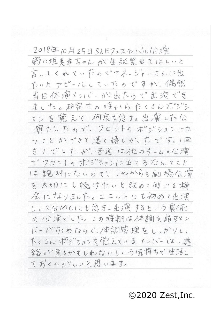 2018年10月25日(木) チームE「SKEフェスティバル」公演 野々垣美希 生誕祭
