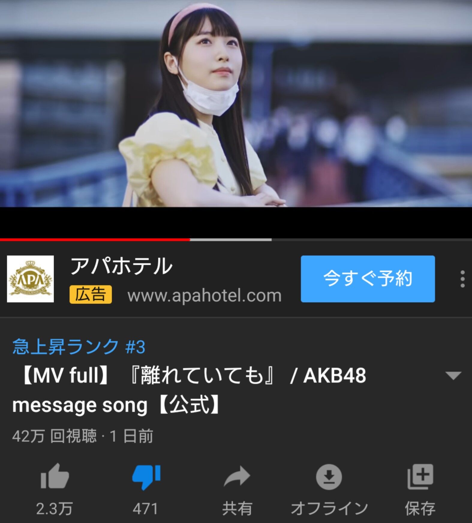 【朗報】AKB48レジェンドメンバーが参加した新曲『離れていても』MV再生数が1日で40万回を突破