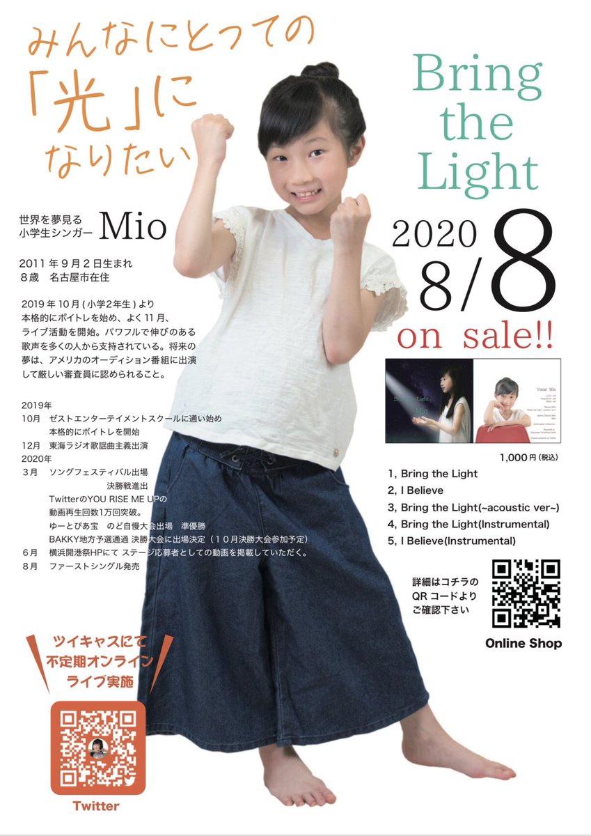 良かったらみんなもらってネ!!😉#小学3年生シンガー#CDデビュー#Mio#8月8日 pic.twitter.com/HGDuHDZMNt— Mio【名古屋 小学3年生シンガー】管理Mioパパ (@Miosinger) June 27, 2020