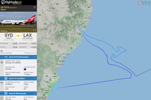 歴史に幕降ろす豪カンタス航空の「ジャンボ」B747 最後に別れのメッセージを空に描く