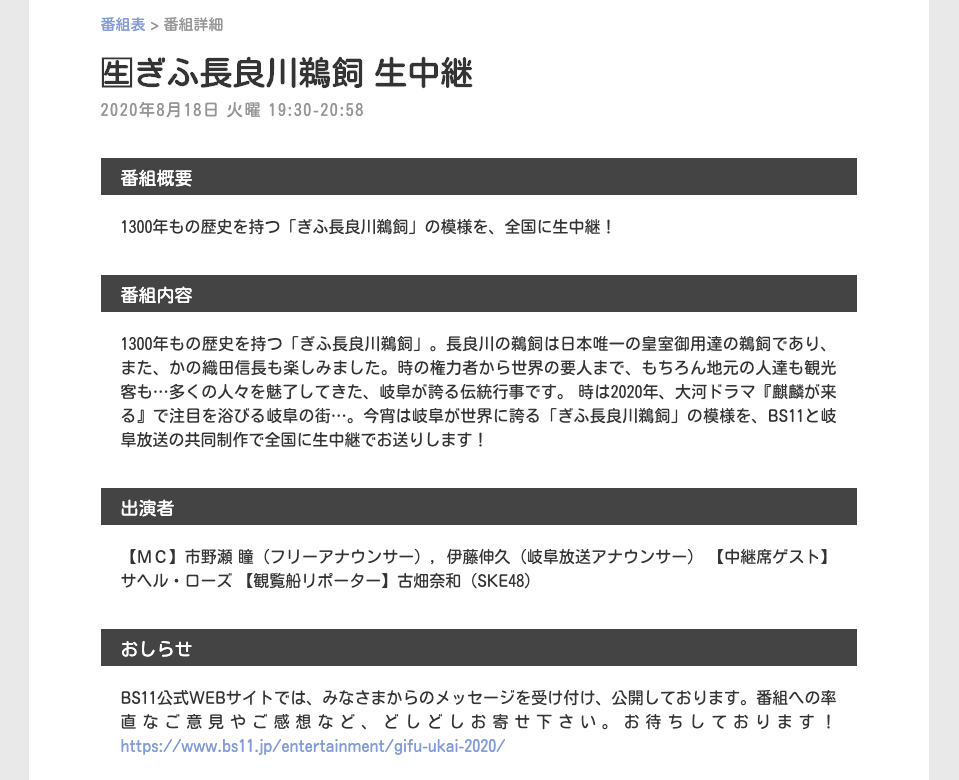 BS11/ぎふチャン 8月18日(火) 19時30分~20時58分