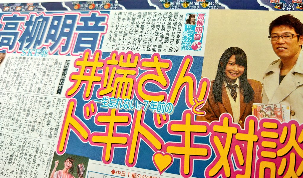 火曜恒例のドラ放談はSKE48高柳明音。一生忘れない! 井端さんと7年前のドキドキ対談。絶対に伝えたかった「いつまでも活躍して! ドラゴンズの監督になって!」。