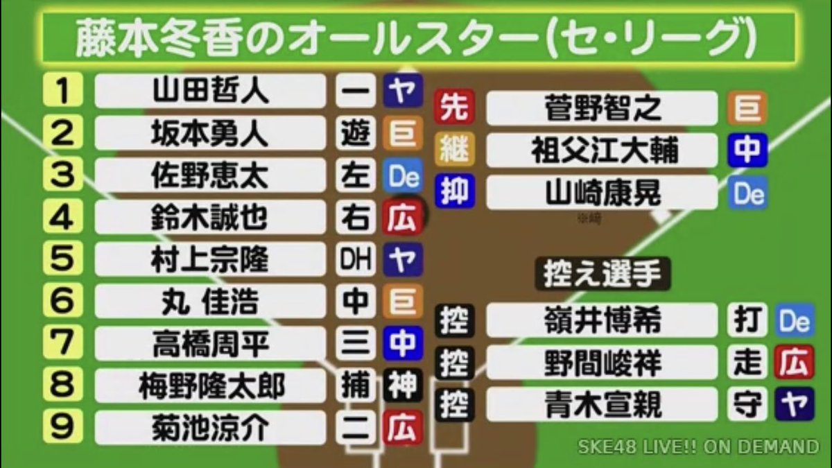 SKEのカープ女子・藤本冬香ちゃんが選んだセ・リーグとパ・リーグのオールスターがこちら