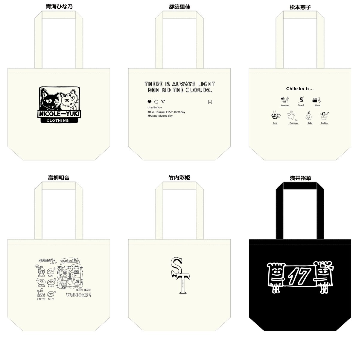 ●生誕記念トートバッグ(2020年11月度)(青海ひな乃/都築里佳/松本慈子/高柳明音/竹内彩姫/浅井裕華)各2,500円(税込)