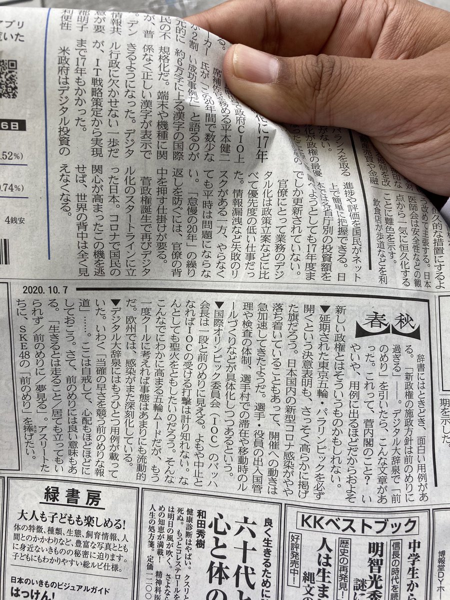 日経1面の「春秋」を読んでいると、まさか最後にSKE48の名前が・・・